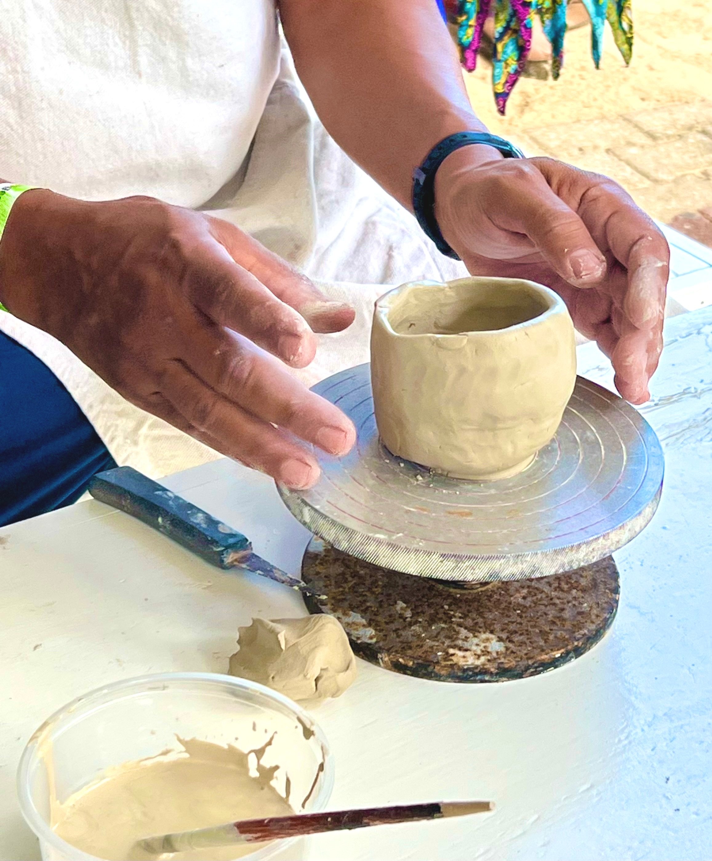 In this beginners class you will learn different handbuilding techniques. Which you can use to make your own cup, vase or bowl.You will be shown how to construct the form and decorate your piece by adding handles or textures and effects of your choice. At the end of the class you will pick your glaze colour and leave it with us to be fired and glazed. The pieces can be collected from the shop or posted to Trinidad for an additional charge.